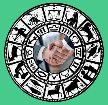 A business partnership compatibility assessment is similar to a romance reading insofaras the astrologer will use chart juxtaposition (synastry) and chart combining techniques to evaluate compatability, integrity, ease of association, and potential for mutual benefit. This reading has been lauded for its ability to cut years off the processs of getting to know a partner and can be equally useful in determining who and who not to have dealings with.